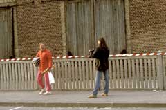 traversant le quartier, avec collages de photos et de textes (légendes,